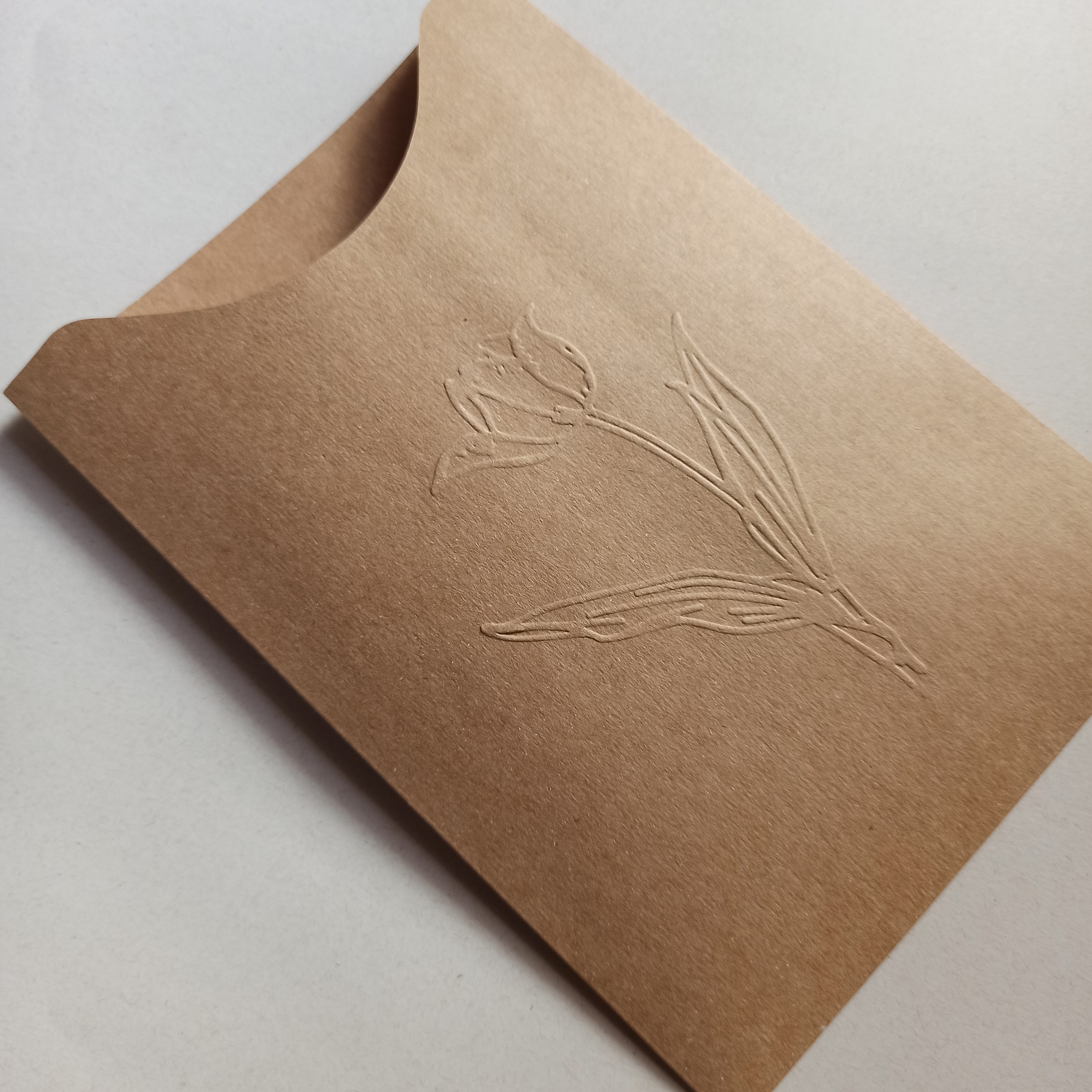 Envelope 15x21 Branco com um delicado relevo seco de tulipa.